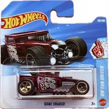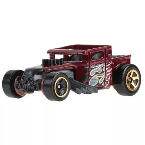 Vedd meg most ezt a 2026-os megjelenésű Bone Shaker kisautót bordó színben és lángnyelves dekorral az oldalán. Épitett Hot Rod, koponyával az elején!